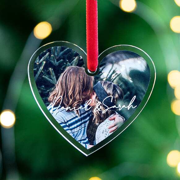 Nuestros adornos tienen forma de corazón pero son planos y se personalizan por una de las dos caras. Puedes poner el diseño que tengas en mente, desde escribir el nombre de cada componente de la casa, una frase especial para conmemorar las fiestas navideñas o una foto de un ser querido o de las últimas vacaciones en familia. Cualquier opción que te venga a la mente la podremos reflejar en vuestro adorno de metacrilato con forma de corazón.