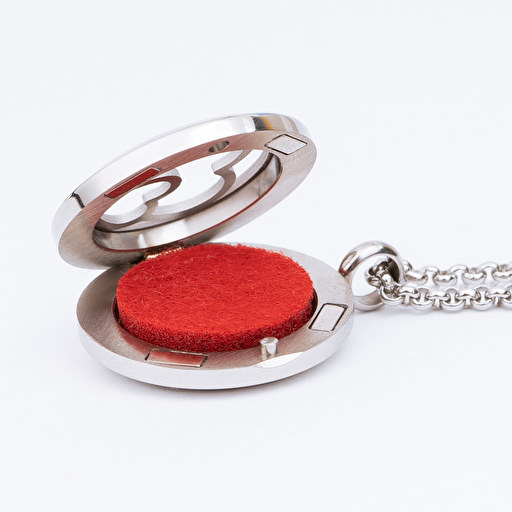 Lo que hace único este colgante es que se puede abrir y en su interior se encuentra una almohadilla de colores. Esta almohadilla es de colores y se puede elegir entre varias tonalidades. En ella, puedes poner tu perfume o aroma favorito para que así siempre vayas perfumada en todo momento.