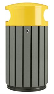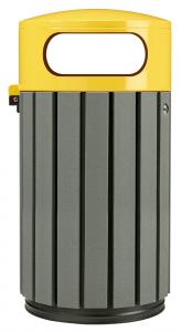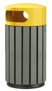 Papelera urbana 40 litros RECICLADA ideal para entornos naturales o urbanos fabricada con diseño de aspecto rústico ideal para la recogida selectiva gracias a la posibilidad de selección de diferentes acabados para los cabezales.