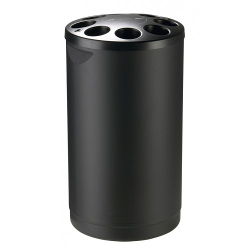 Papelera contenedor recolector de vasos con una gran capacidad de hasta 1600 vasos de plástico en color negro.