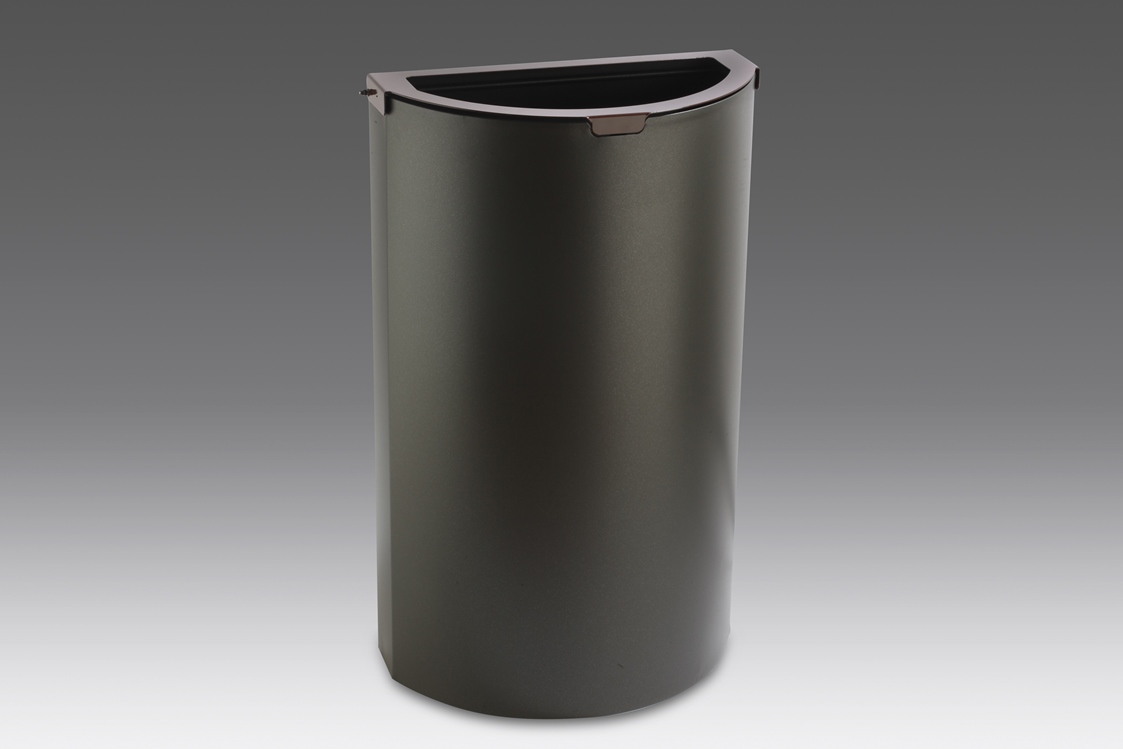 Papelera reciclaje semicircular metálica color gris con cabezal identificativo del color de cada residuo a elegir por el cliente y aro sujeta-bolsas interior para facilitar el vaciado.