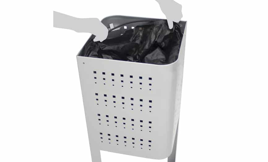 Se le puede acoplar un cenicero de capacidad de 1 litro convirtiéndola en una papelera cenicero o bien un dispensador de bolsas caninas para aprovechar su doble uso.
